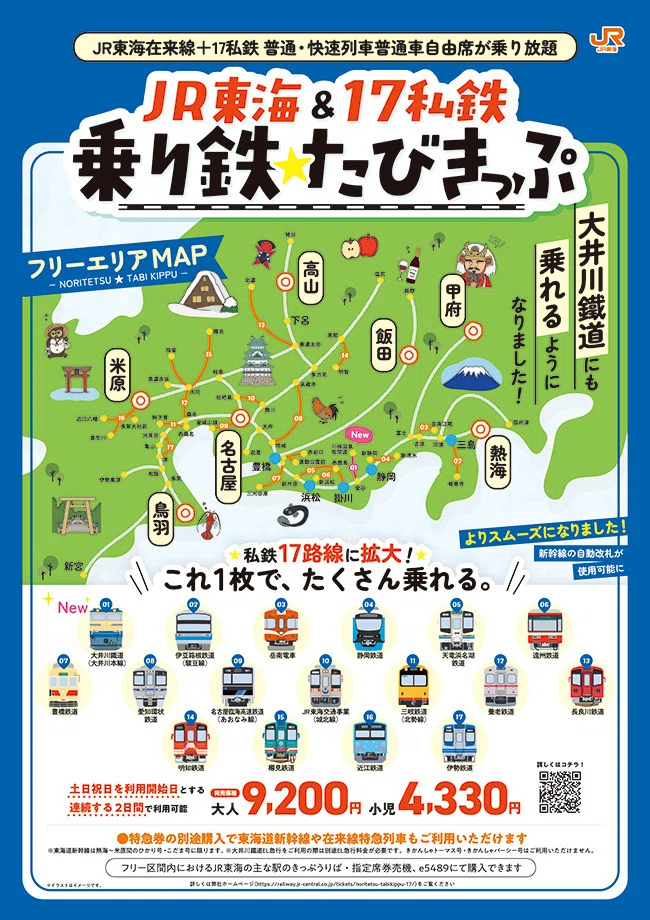 JR東海の「17私鉄乗り鉄たびきっぷ」の関西からの利用法を解説します。