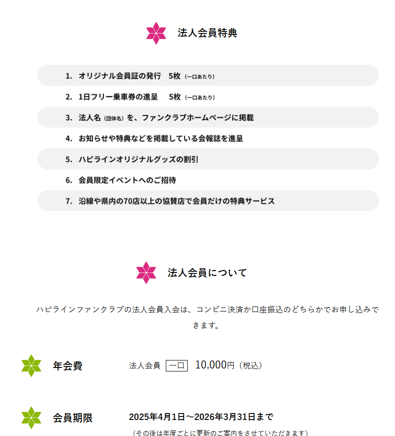 法人会員としてファンクラブの会報誌や公式ウェブサイトに企業名・店舗情報が掲載されることは、鉄道ファンや地域住民に対する有効な広告媒体となります。
