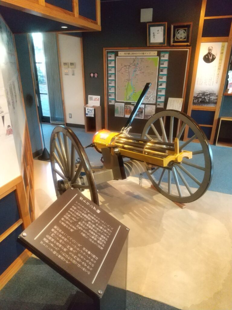 館内に展示された、当時の最新大砲「ガトリング砲」の模型です。一分間に200発もの連射を可能にした当時の最新兵器を、継之助は自ら操作したそうです。