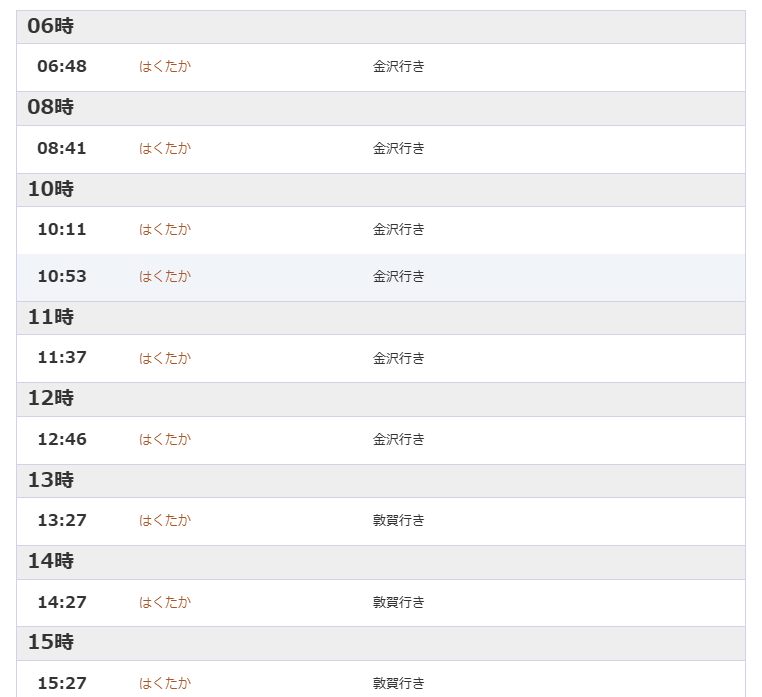 今回驚いたのは北陸新幹線の朝の金沢方面の本数が少ないということでした。