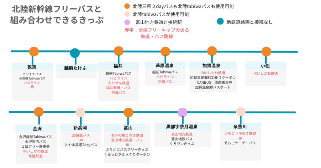 北陸新幹線フリーパスとともに利用がおすすめのきっぷを以下の図に挙げます。