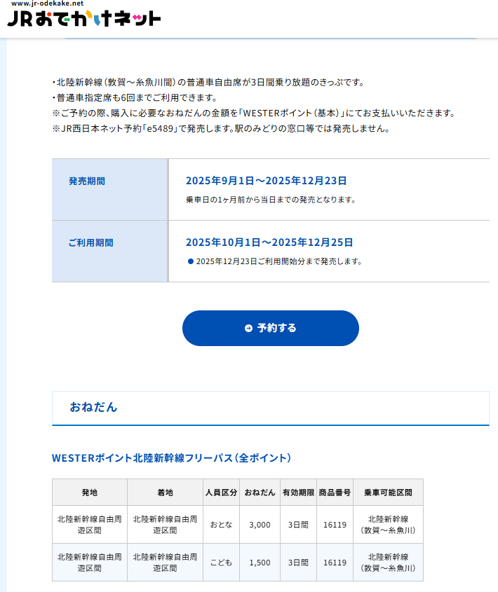 利用区間 北陸新幹線 敦賀〜糸魚川間の普通車自由席が連続する3日間乗り放題!!※普通車指定席は6回までご利用可能※普通自由席のご利用に回数制限はございません