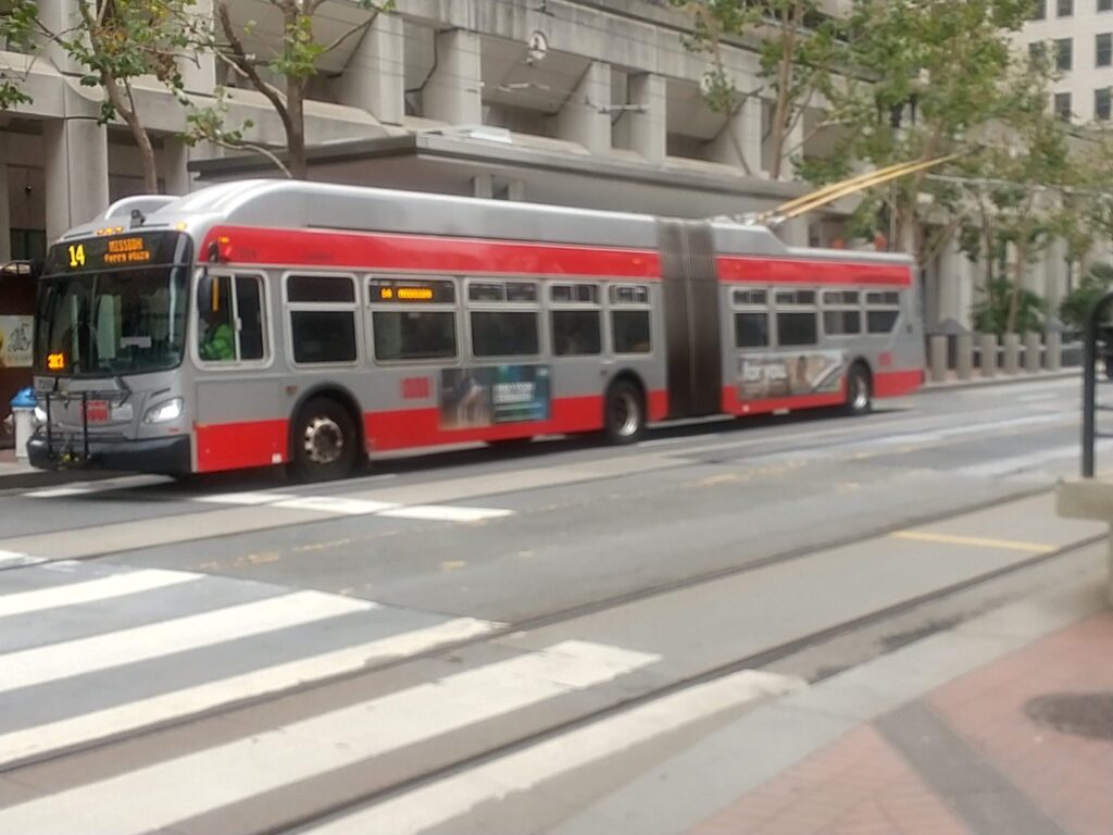 しかしサンフランシスコではこのトロリーバスを街のあちこちで見ることができます。道幅広いバイパス道路などにもバス路線があるのでもちろんトロリーバスでない形式の車両もありますが、中心部や住宅地をトロリーバスのものは多いです。